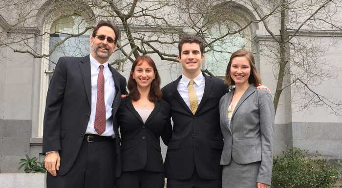 Professor Jeff Selbin, Lindsay Walter ’16, Nathaniel Miller ’16, and public policy student Marina Fisher.