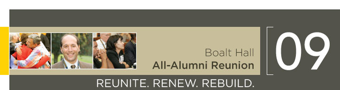 Come mingle with classmates and faculty over cocktails and hors d’oeuvres in the grand ballroom of the historic Palace Hotel and join reunion chair Terry O’Reilly ’69 in recognizing the 2009 class campaign volunteers. Dinner will follow at 7:30 pm and feature remarks from Jeff Bleich ’89, special counsel to President Obama. Special seating will be arranged for graduates in class years ending in 4 and 9 who are celebrating class reunions. Music and dancing afterward!